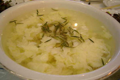 珍貴的“龍井茶”,如果泡過一兩趟水以后就倒掉,實在有點可惜了。如果用泡過的茶葉做一道“綠茶拌豆腐”的菜肴,在這個初春時節(jié),吃起來倒別有一番橄欖菜的味道,且營養(yǎng)豐富,非常清涼、好吃。