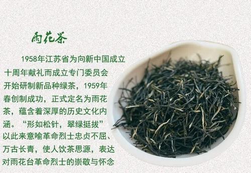 南京雨花茶是綠茶炒青中的珍品,也是中國三針之一,即:安化松針(半烘半炒),南京雨花(炒青),恩施玉露(蒸青),是優(yōu)質(zhì)細嫩針狀春茶,產(chǎn)于南京中山陵,雨花臺園林風(fēng)景區(qū),因此得名“雨花茶”。 雨花茶創(chuàng)制于1958年,是60年底代我國綠茶中嶄露頭角的新品名茶。