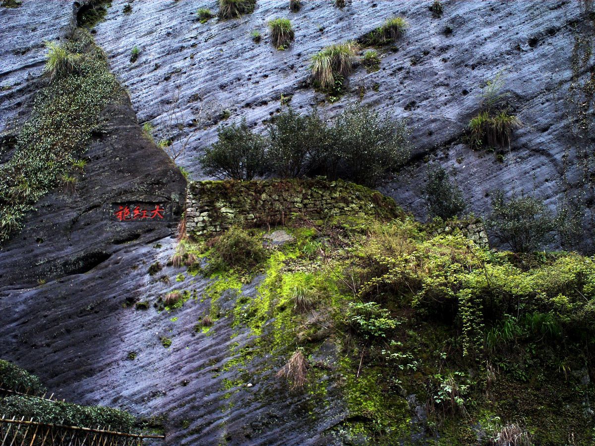 1980年以前,大紅袍母樹只有三棵,位于武夷山天心巖九龍窠巖壁之上,在產(chǎn)量好的年份也只能產(chǎn)出幾百克茶葉(不到1斤),其金貴程度可見一斑。