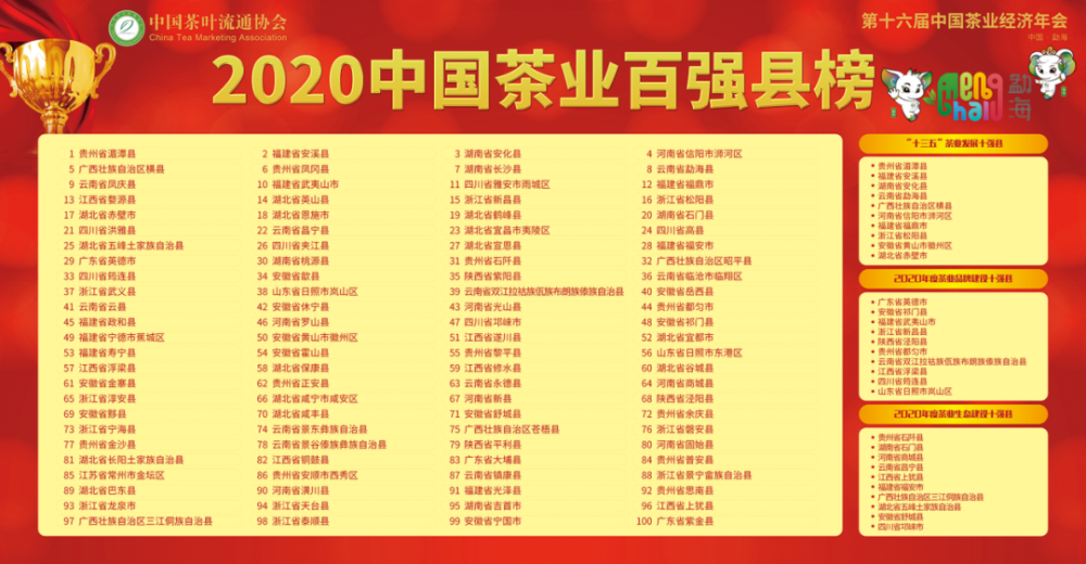 本文標題:2020中國茶業(yè)百強縣名單公布,紫金入圍中國茶業(yè)百強縣 - 茶葉新聞_中國茶葉新聞_國際茶葉新聞