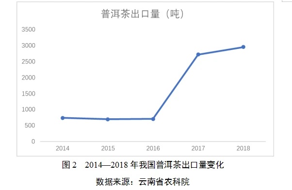(四)出口國別多元化2017年以來,我國普洱茶出口量較2014—2016年顯著增加,并呈繼續(xù)增加趨勢。2017年,我國普洱茶出口量2717.3噸,2018年我國普洱茶出口量2953.5噸。
