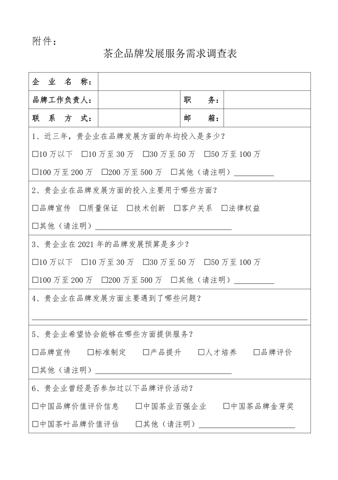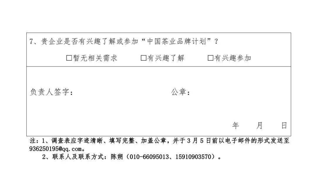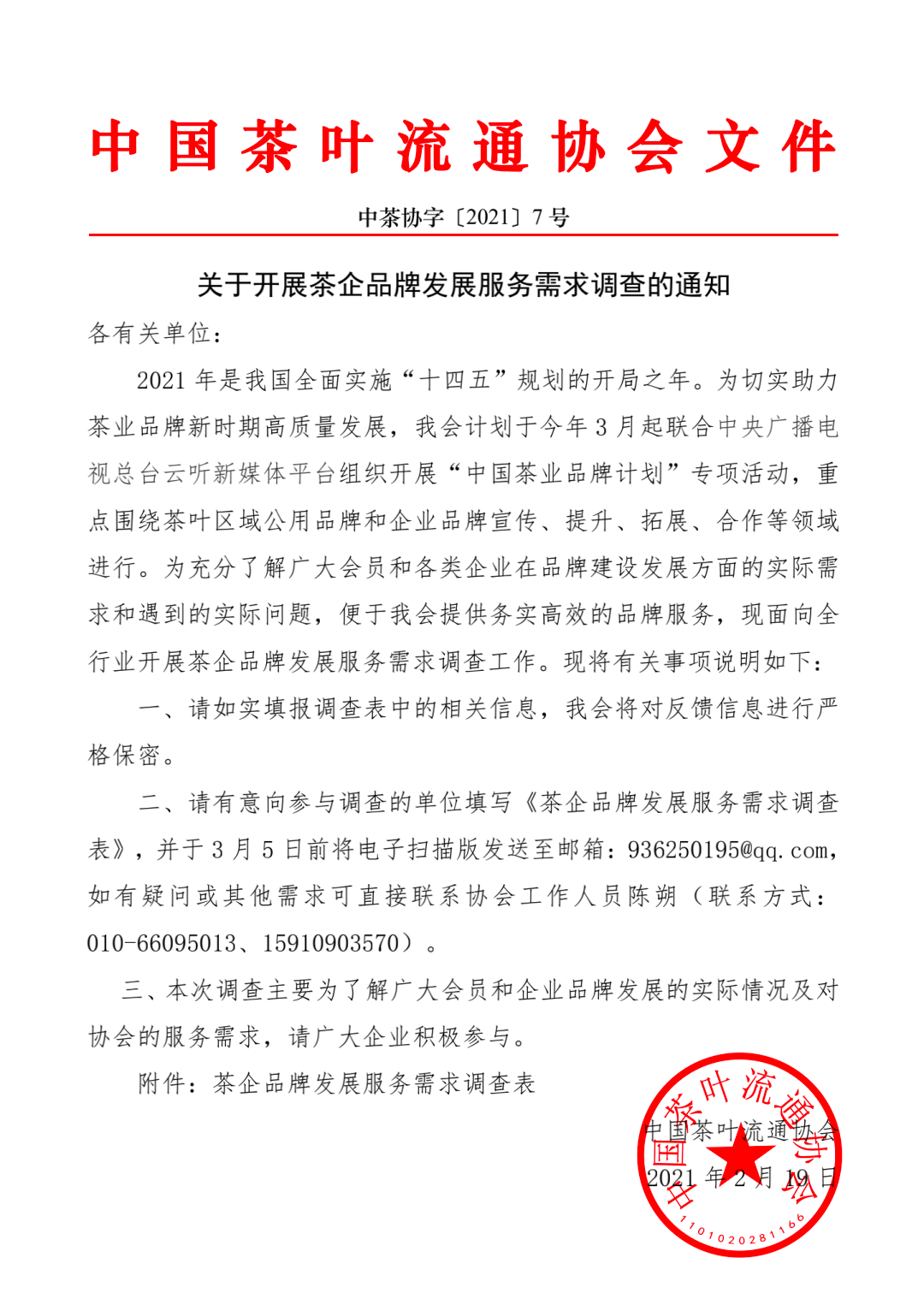 關于開展茶企品牌發(fā)展服務需求調查的通知