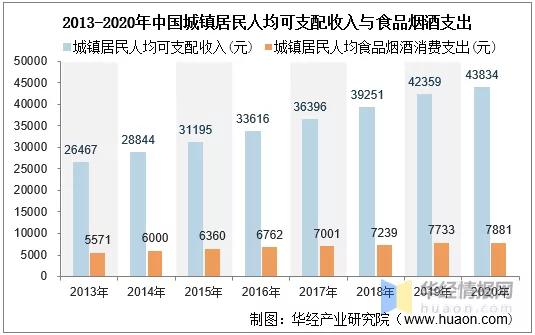 隨著我國經(jīng)濟(jì)持續(xù)向好發(fā)展,城鎮(zhèn)居民人均收入與消費(fèi)水平持續(xù)提升。2013-2020年中國城鎮(zhèn)居民人均可支配收入由26467元增長至43834元,食品煙酒消費(fèi)支出由5571元增長至7881元??焖僭鲩L的消費(fèi)能力帶來多元化、品質(zhì)化的消費(fèi)升級(jí)需求,利好整體大消費(fèi)行業(yè),成為支撐新茶飲行業(yè)消費(fèi)的基本盤。