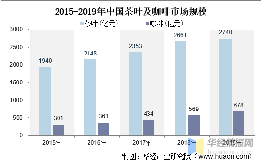 茶始終是中國消費(fèi)者現(xiàn)制飲料消費(fèi)的最大品類,茶葉消費(fèi)市場規(guī)模依然遠(yuǎn)高于近年來在中國快速增長的咖啡市場:2019年中國茶葉銷售額達(dá)2740億元,遠(yuǎn)高于咖啡678億元的市場規(guī)模。從人均茶葉消費(fèi)量來看,2015-2019年人均消費(fèi)量持續(xù)增長,由1.22千克/年增長至1.44千克/年,預(yù)計(jì)未來將維持增長態(tài)勢,2025年可達(dá)到1.87千克/年。