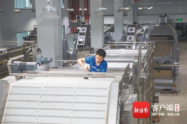 6月16日,在海墾茶業(yè)生態(tài)科技園(一期)項(xiàng)目現(xiàn)場(chǎng),工人們正在抓緊安裝、調(diào)試剛進(jìn)場(chǎng)的紅茶、綠茶生產(chǎn)線。