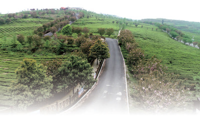 看過新茶山,我們又驅(qū)車趕到他和戰(zhàn)友們開發(fā)了整整十年的萬家山觀光茶園。一條水泥路轉(zhuǎn)了十幾圈方抵山頂。這里有圍欄和觀景臺,有辦公區(qū)、會議廳、品茶室,有通往各個景區(qū)的木板棧道,有造型優(yōu)美的白色涼棚。登高遠(yuǎn)眺,群山起伏連綿,一條條公路蜿蜒其間,串連起一個個粉墻烏瓦的村莊。遠(yuǎn)近山坡上,遍布一排排齊整的茶樹,仿佛層層碧濤連綿不絕。